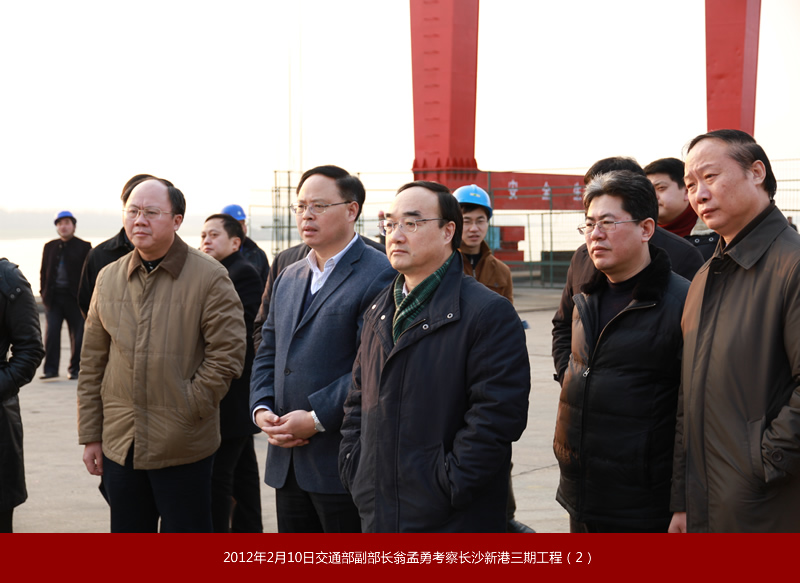 2012年2月10日,交通運輸部黨組副書記、副部長翁孟勇來長沙新港考察時強調:長沙新港變化一次比一次大,當前要借助湖南加大水運發(fā)展力度的有利契機,加快樞紐、港口和湘江2000噸級航道提升建設,更好地服務經濟社會和航運的持續(xù)發(fā)展。